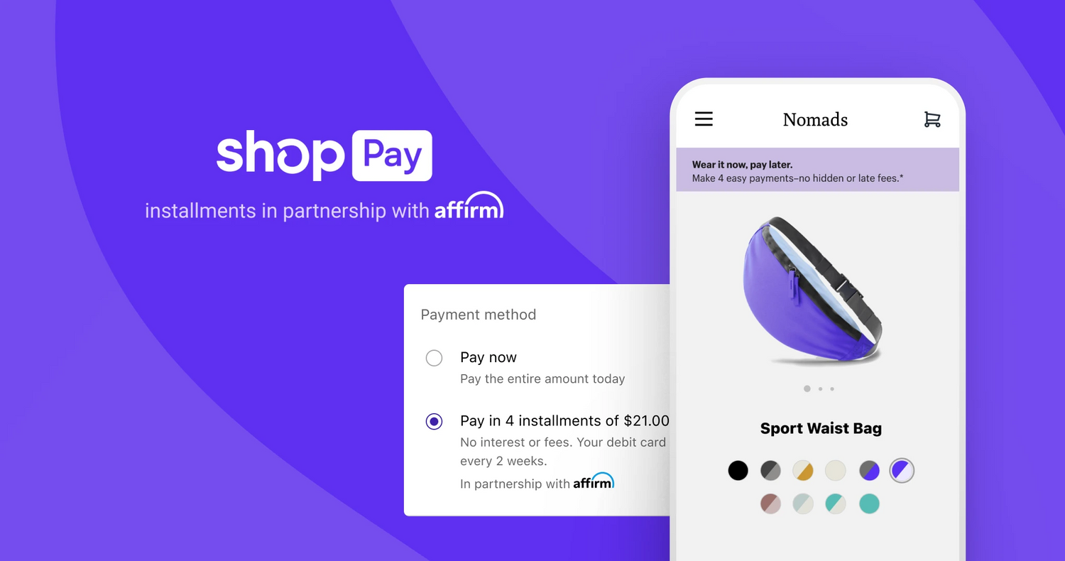 To set up Shop Pay on your order, simply click the "Shop Pay" button listed under the subtotal in your shopping cart.