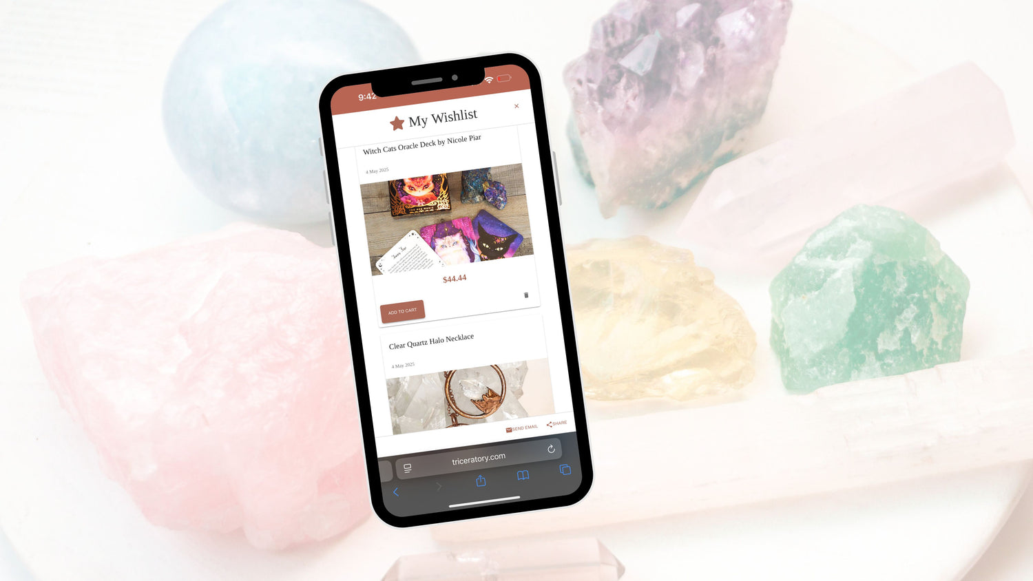Adding to your wishlist is as simple as clicking the little star that you'll see at the top right corner of everything in our shop!