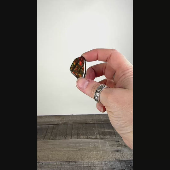 Ammolite is the fossilized shells of Ammonites that once lived in the Western Interior Seaway, an ancient sea bed in what is now Alberta, Canada. The shells of these ammonites were replaced with Aragonite, but unlike many crystals, the beautiful red, green, and even purple or blue opalescent color play that Ammolite is known for is due to, not impurities inside the crystal, but the actual microstructure of the Aragonite. As the light rebounds from the layers within the Aragonite, the beautiful colors are seen. Thicker layers produce reds and greens, whereas more fragile, thinner layers produce blues and purples, making them far more rare.