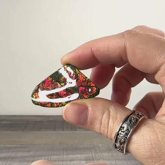Ammolite is the fossilized shells of Ammonites that once lived in the Western Interior Seaway, an ancient sea bed in what is now Alberta, Canada. The shells of these ammonites were replaced with Aragonite, but unlike many crystals, the beautiful red, green, and even purple or blue opalescent color play that Ammolite is known for is due to, not impurities inside the crystal, but the actual microstructure of the Aragonite. As the light rebounds from the layers within the Aragonite, the beautiful colors are seen. Thicker layers produce reds and greens, whereas more fragile, thinner layers produce blues and purples, making them far more rare.