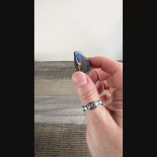 The energy of Ammolite can be likened to Labradorite both in its color play, caused by a similar function of layers within the stone, and in its energy. Ammolite is highly mystical and transformative, cutting through illusions and irrationality and connecting to higher realms of wisdom as well as the deeper, ancient wells of wisdom that all fossils possess.