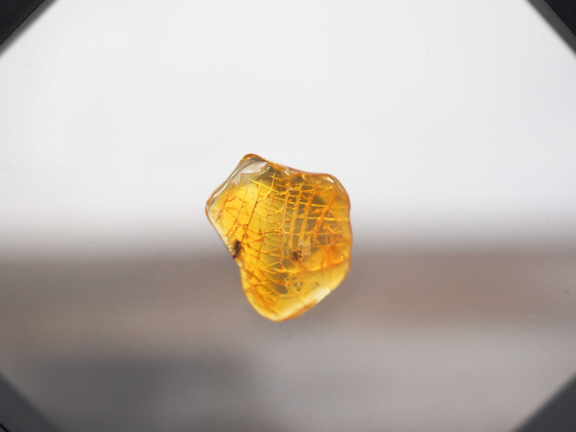 This 14mm piece of Baltic Amber comes in a 4" x 3.75" floating frame and has 2 tiny wasp inclusions.