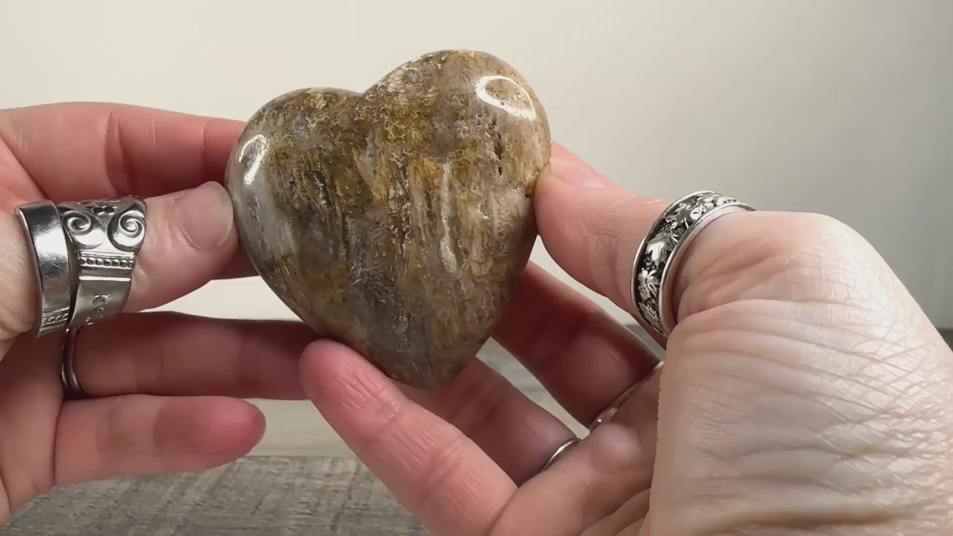 These beautiful Fossilized Coral Heart Palmstone Carvings are all around 2.5"