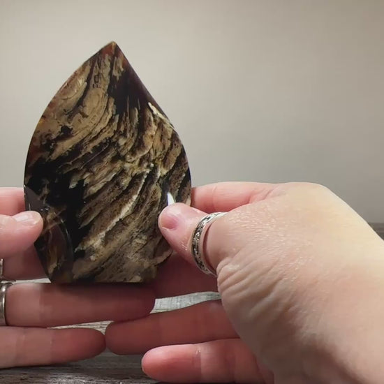 What it literally is, is fossilized tree resin, exuded to mend wounds to trees that formed the forests dinosaurs would have lived in. This makes its energy soothing, healing, and compassionate, as well.