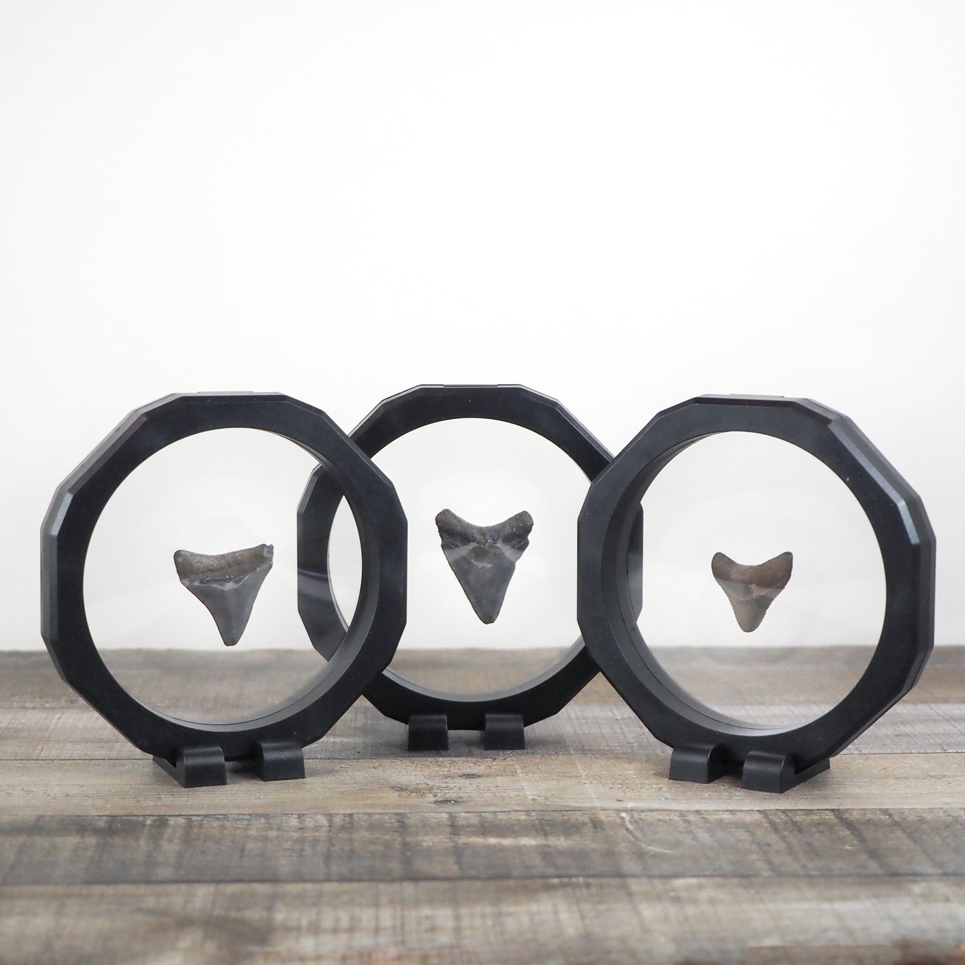 These Juvenile Megalodon Shark Teeth were collected in the Peace River in Central Florida. Most of them have lovely serrations still present! All will come with the 5" floating frame they are displayed in.