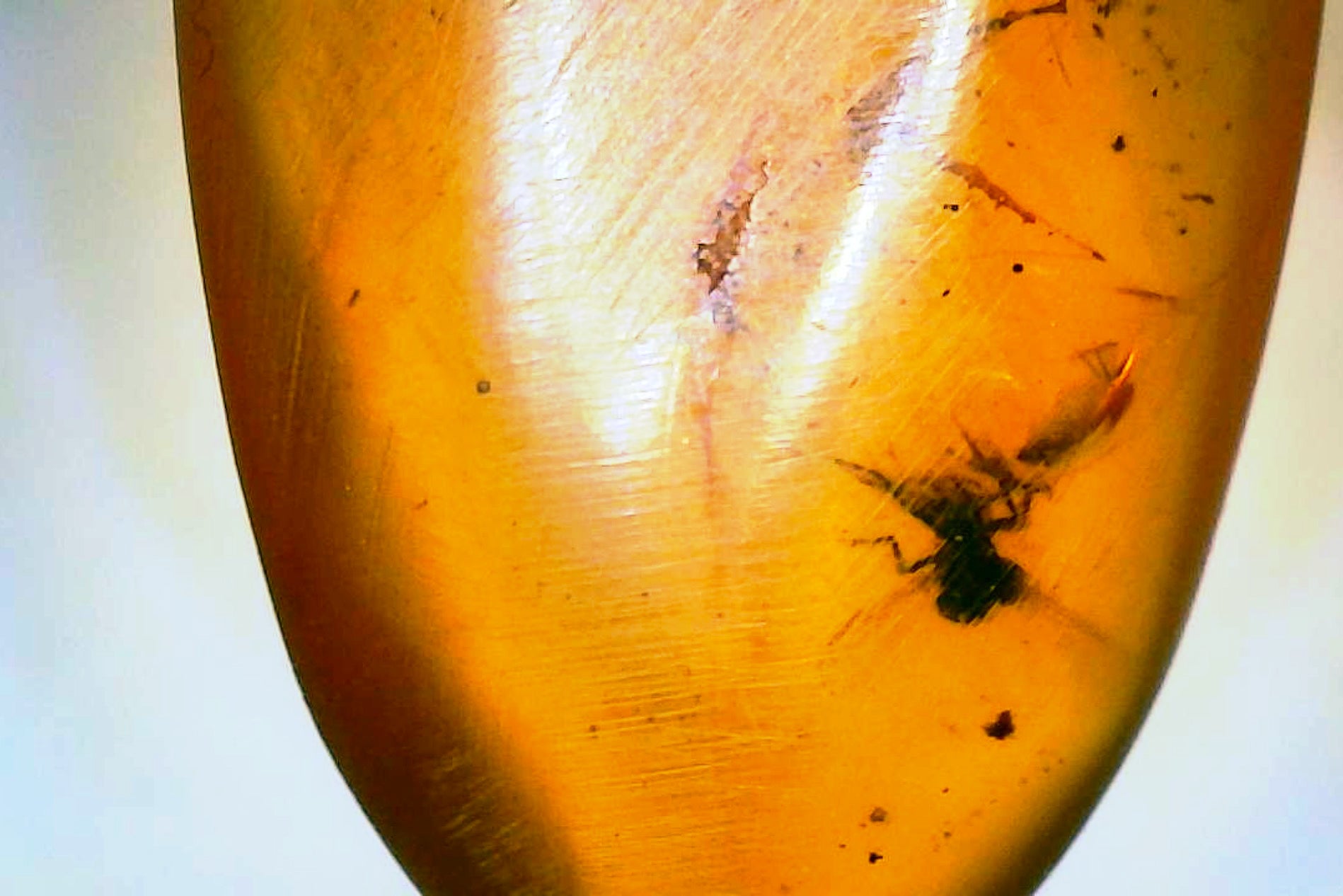 Amber is the fossilized resin of trees from millions of years ago. Resin is produced exclusively in trees that belong to the Pinaceae family, such as pine, fir, and cedar. It forms in the bark of trees, where it acts like a bandaid- closing wounds to the tree and keeping it safe from the elements while it heals. Resin is thick and sticky, and quite often will collect insects, small pieces of vegetation, and even algae.