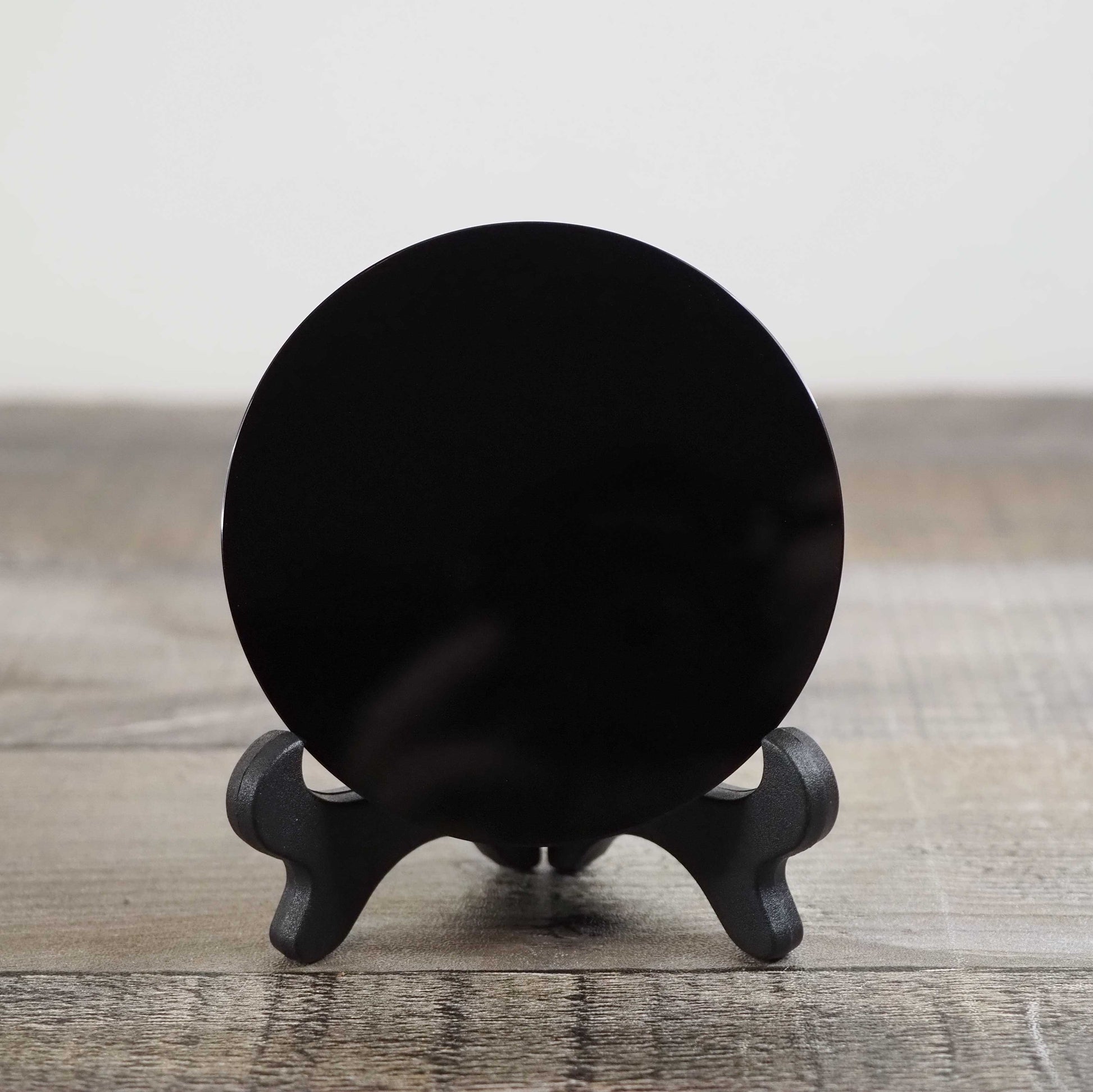 These Obsidian Mirrors are around 3" in diameter and will come with a stand similar to the one shown in the picture and a velvet pouch for safe-keeping.