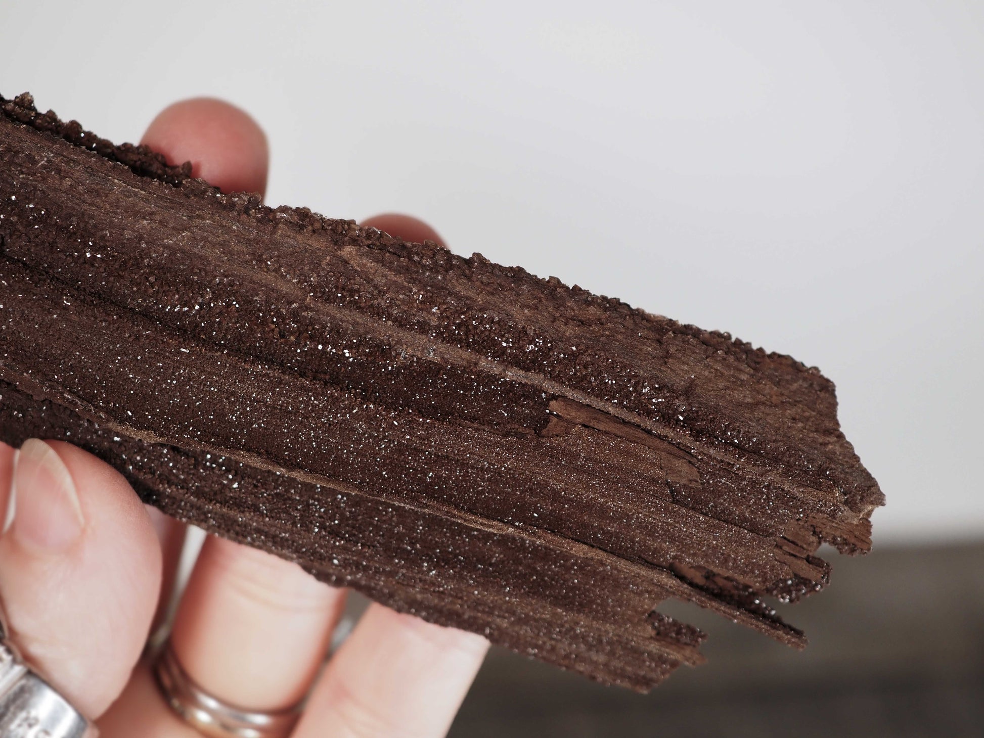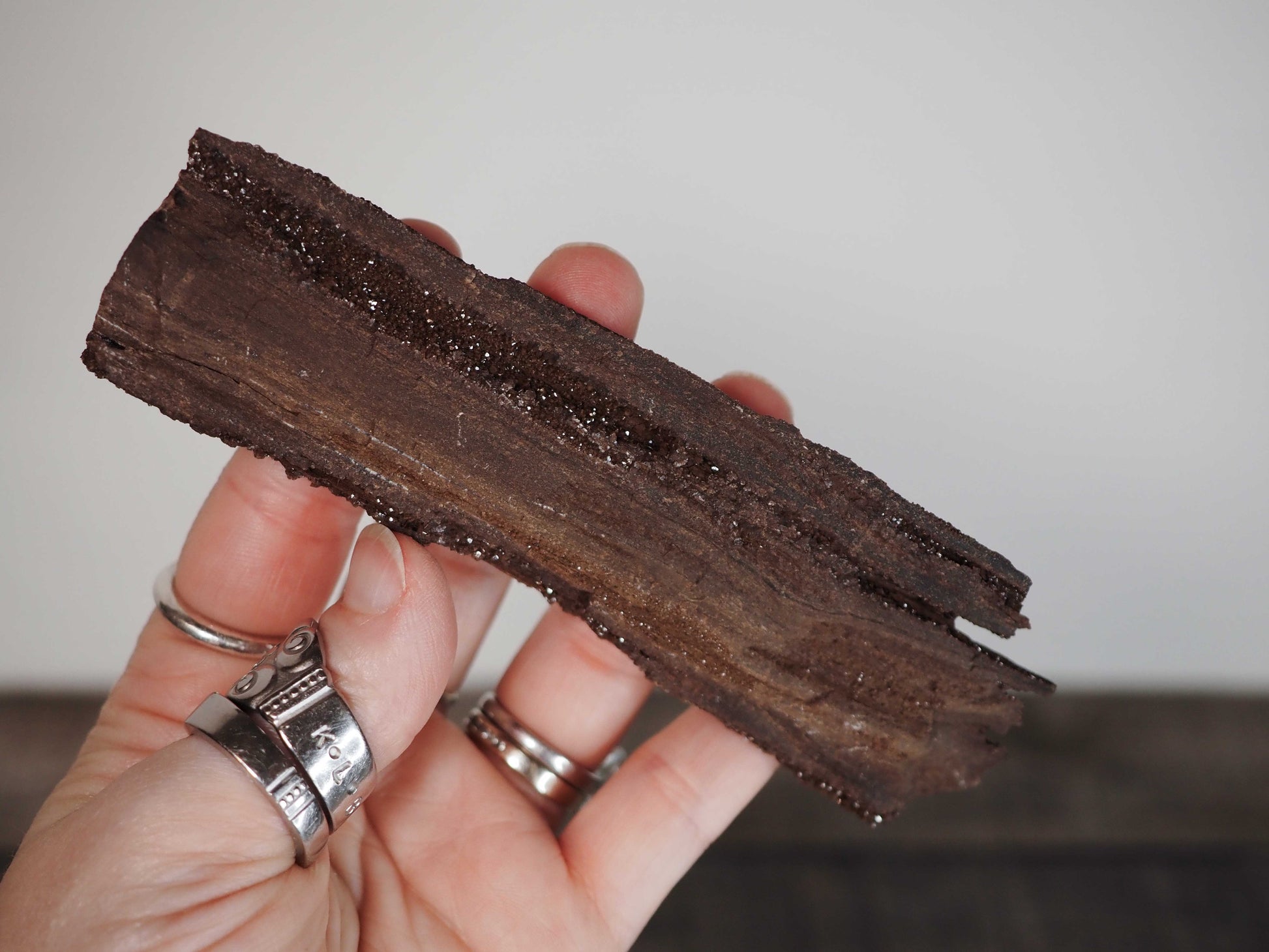 This 5.25" x 1.6" section of permineralized wood from the Brown Coal Open Pit in Zwenkau, Leipzig, Germany features quartz druzy and the most fascinating detail that makes this wood not only beautiful but an important part of the fossil record, dating back 35 million years to the Jurassic period! Due to flooding, mining of this wood had to be stopped in 2021, and even if it were still intact (as it is not fully mineralized and still susceptible to the elements) it is now completely inaccessible, meaning no more will be able to be mined.