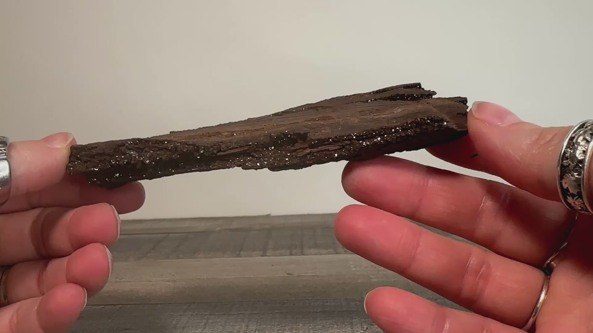 Petrified wood is a grounding, stabilizing source of patient wisdom, and although this permineralized wood certainly has those aspects, it is "mummified" wood, encased in a quartz druzy that enhances and amplifies its abilities, making this a particularly magical fossil! Its energy is one that really has to be experienced for oneself!