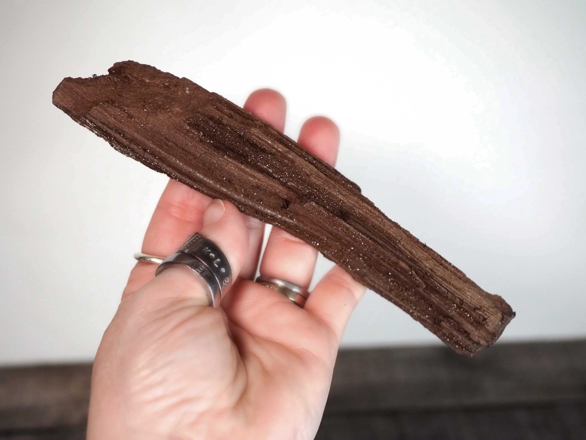 Petrified wood is a grounding, stabilizing source of patient wisdom, and although this permineralized wood certainly has those aspects, it is "mummified" wood, encased in a quartz druzy that enhances and amplifies its abilities, making this a particularly magical fossil! Its energy is one that really has to be experienced for oneself!